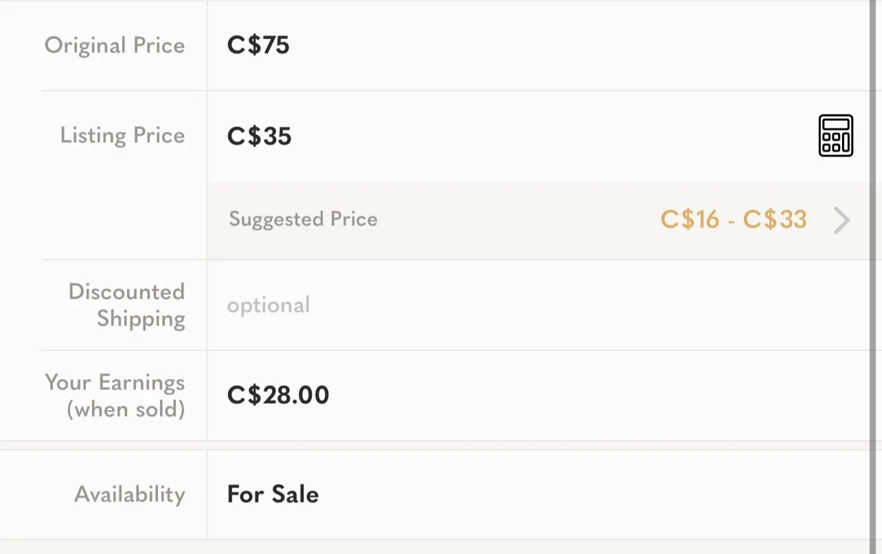 The buyer pays a flat fee of $13.49 for shipping, which takes the guess work out of pricing shipping (unlike other platforms like eBay or depop). Sellers can also make an “offer” to buyers with discounted shipping. In this case, the shipping discount is paid by the seller. That is, if you offer $3 off shipping, that $3 comes out of your profit.